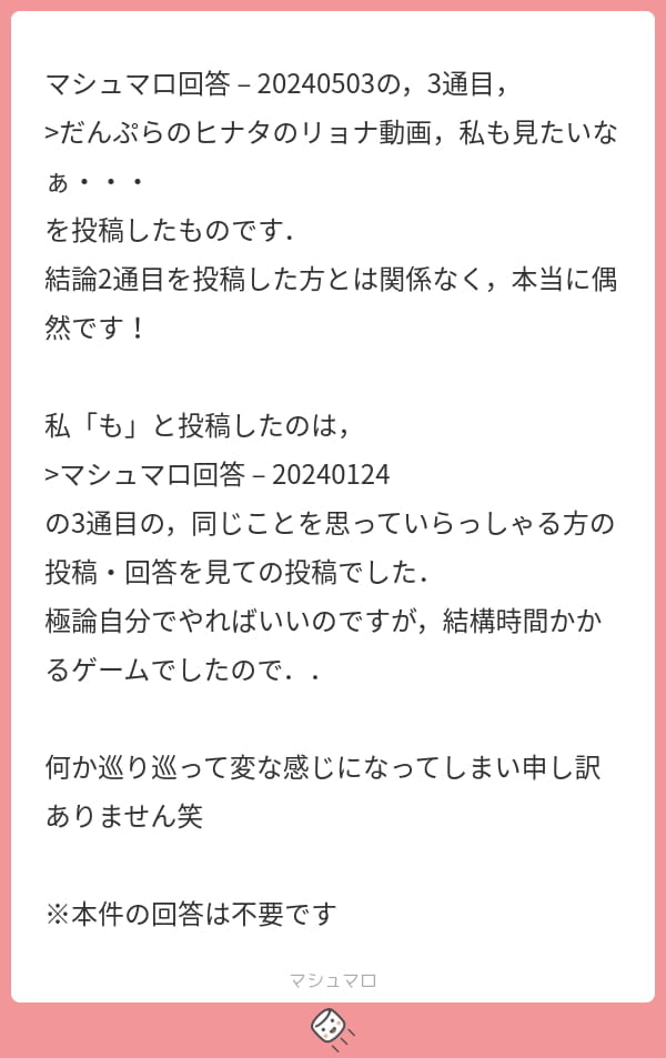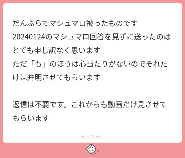 20240124のマシュマロ回答を見ずに送ったのはとても申し訳なく思います
