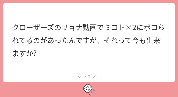 クローザーズのリョナ動画でミコト×2にボコられてるのがあったんですが、それって今も出来ますか?