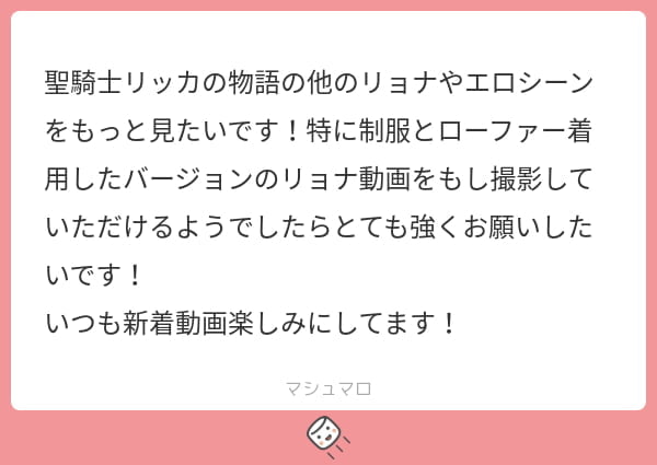 この運用変更に伴い、誠に勝手ながら本日以降にマシュマロに送られたリクエストへの回答は控えさせていただきます。