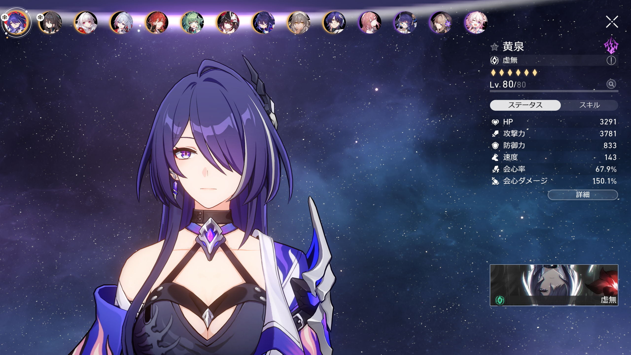 ラスボスは符玄(1凸)、銀狼(2凸)、黄泉(2凸)、開拓者(調和)のパーティで挑みました。